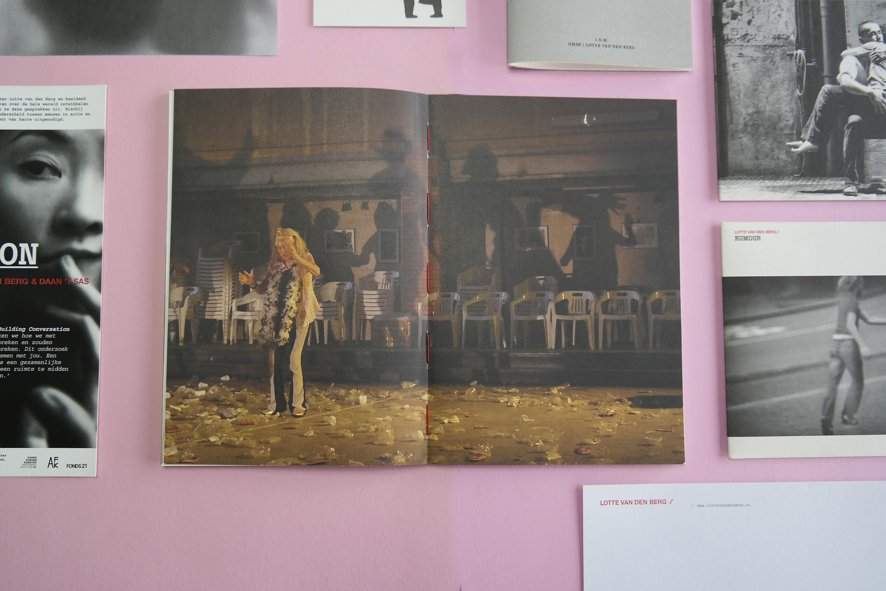 Verantwoordelijk voor ontwerp folders, affiches, map, archief, boekjes, tekstboekje, visitekaartje, krant, dvd-hoesjes, krant (behorend bij voorstelling ‘Pleinvrees’ of ‘Agorafobia’ gespeeld op pleinen in o.a. Brussel, Amsterdam, New York, Berlijn en Rome) en vormgeving exposities op diverse locaties (theaters in Antwerpen, Den Bosch, Graz, Rotterdam, Zürich).